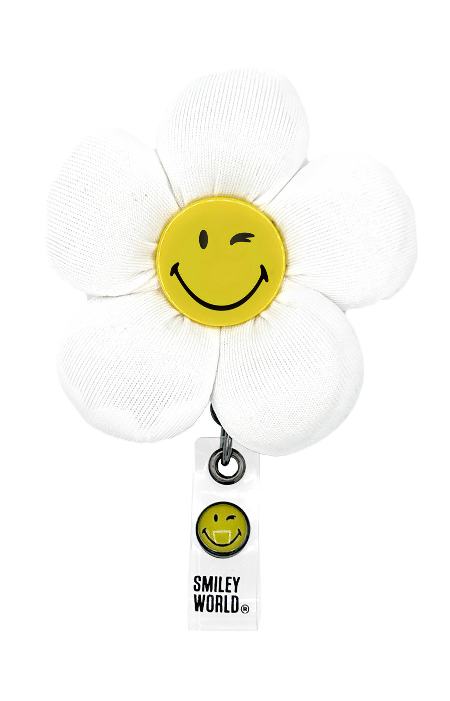 Badge Reel Flower Smiley Puffer