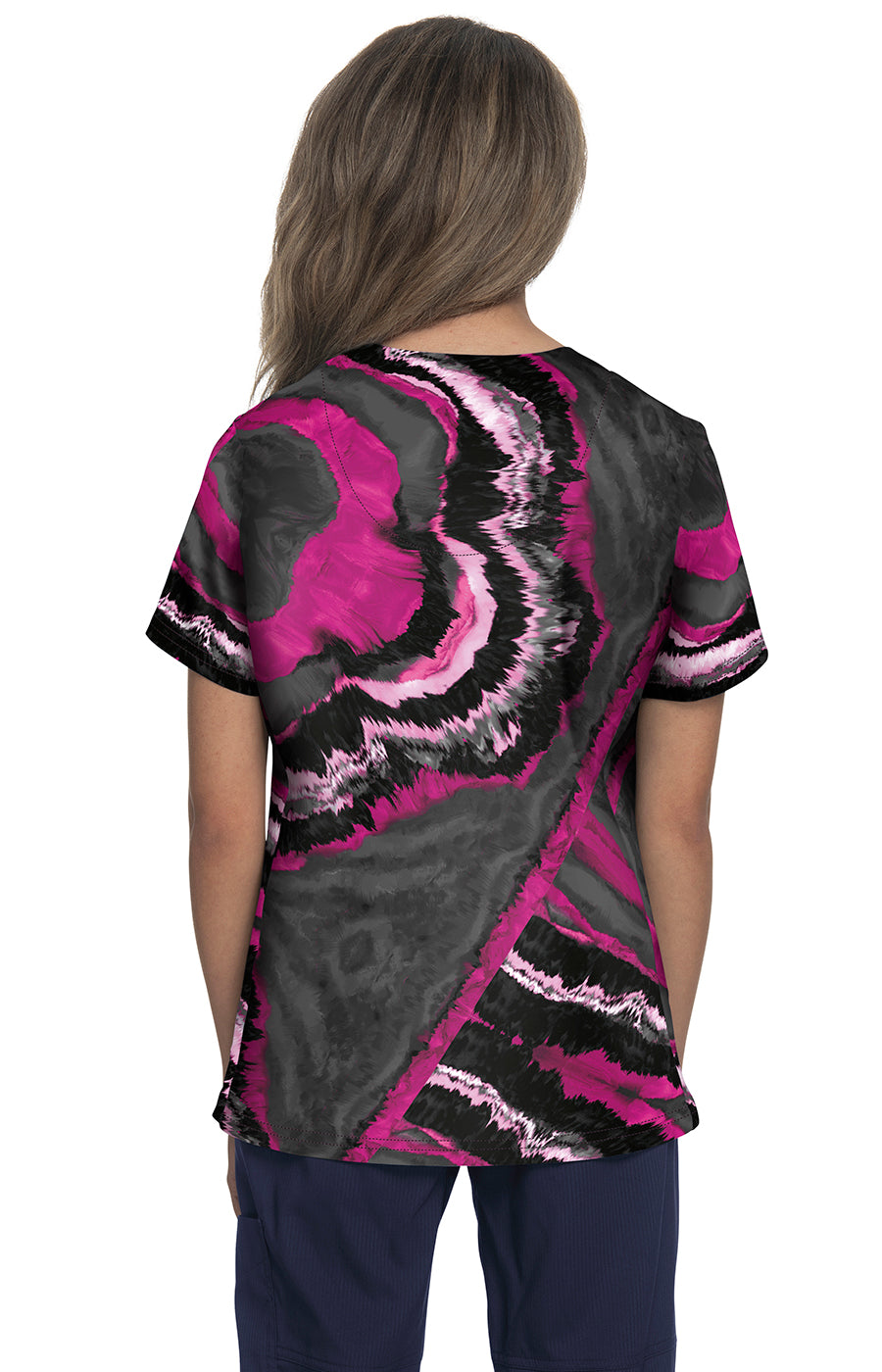 koi Lite Reform Women's 2-Pocket Stretch Ombre Print Scrub Top Pink Marble