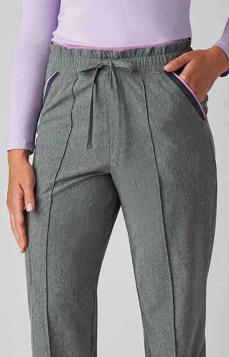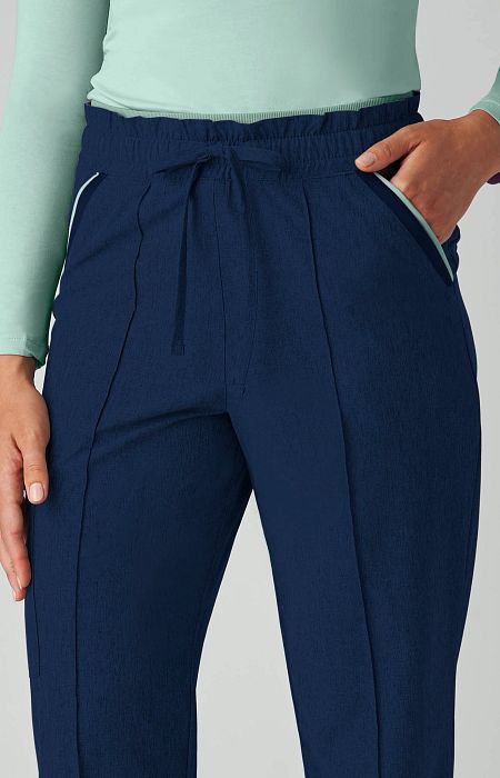 The Raelynn pant is a fresh take on your everyday scrub bottom. With a high-rise fit and wide-leg silhouette, it offers an easygoing feel that moves with you throughout the day. The elastic drawstring waistband features contrast rib trim for a sporty touch, while pin tuck detailing at the front adds just the right amount of polish. Five pockets—including contrast-accented front pockets, cargo pocket, and two back patch pockets—keep your essentials close and organized. Pairs perfectly with our matching McKenna top.