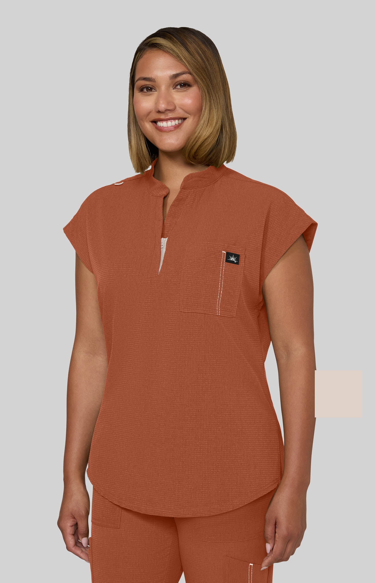 Modern scrub top featuring our ultra-durable yet silky soft ExoFlex™ ripstop stretch fabric. Contemporary fit.