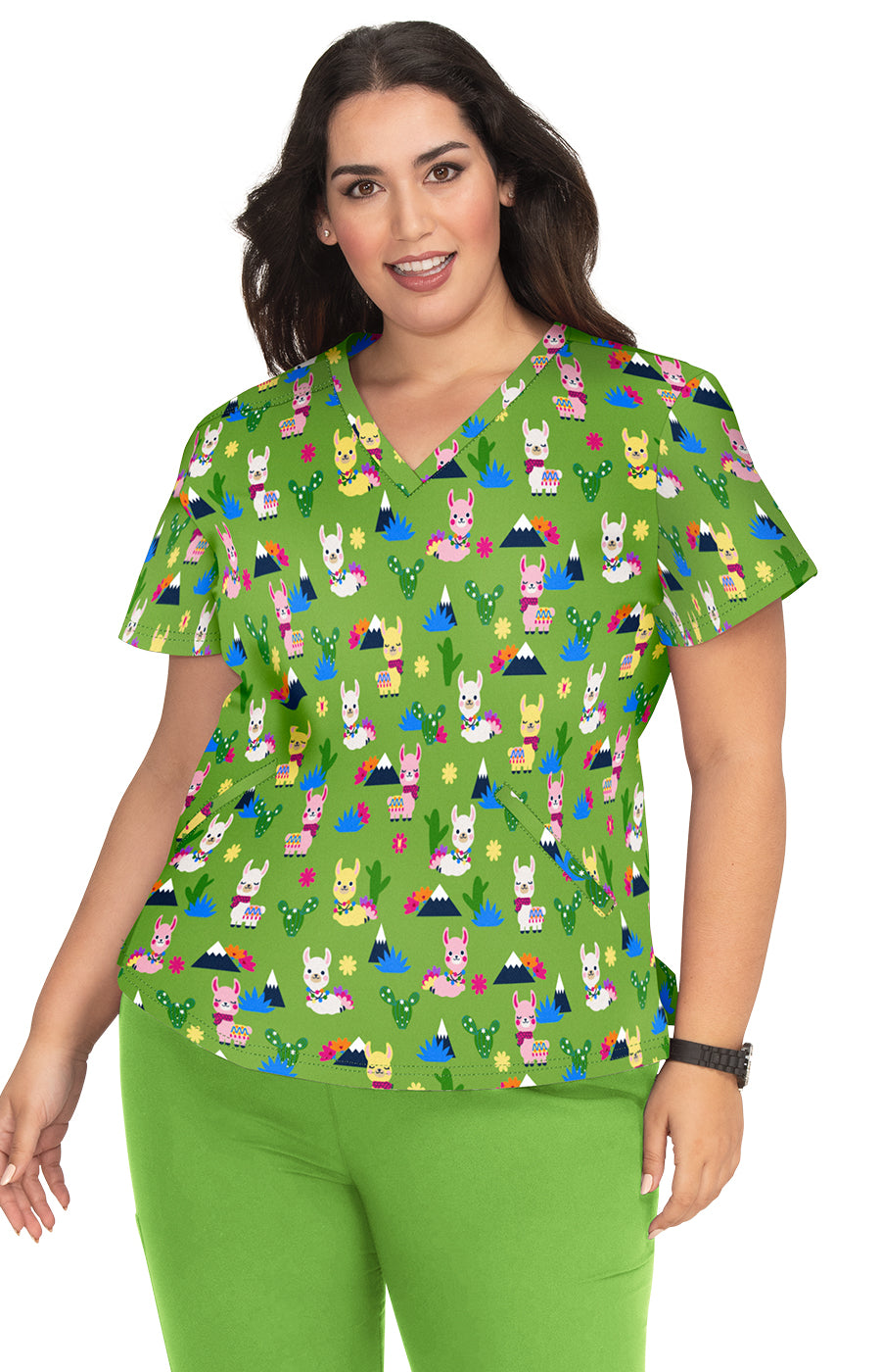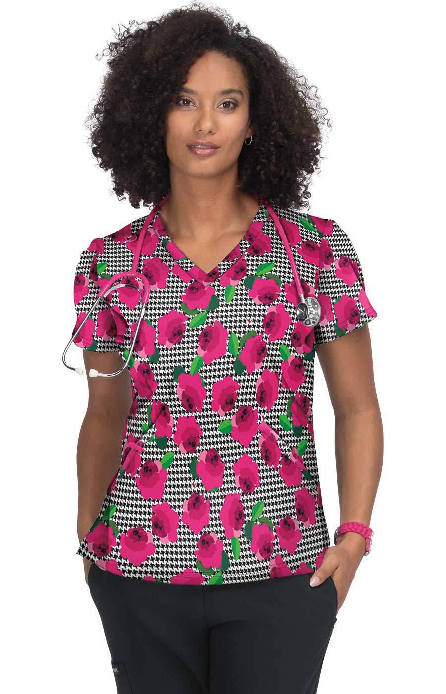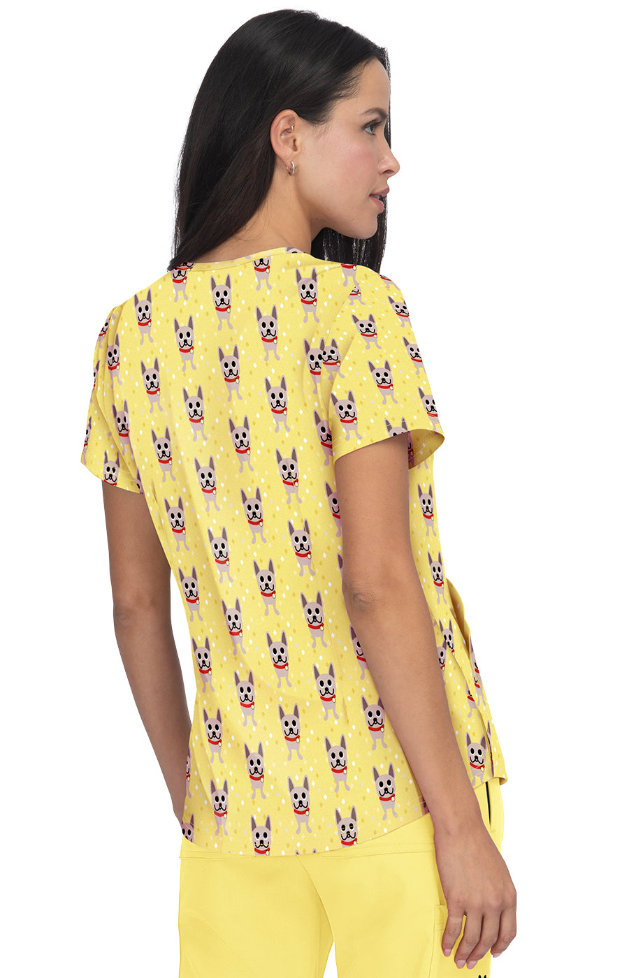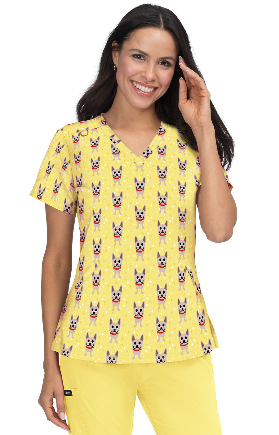 French Bull by koi Doll Women's 2-Pocket Stretch Print Scrub Top