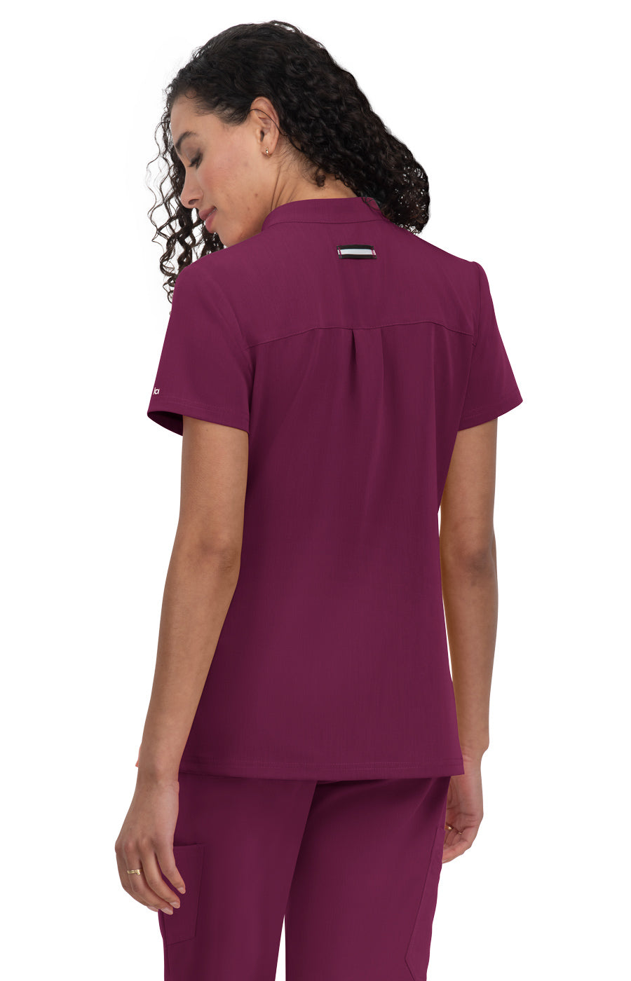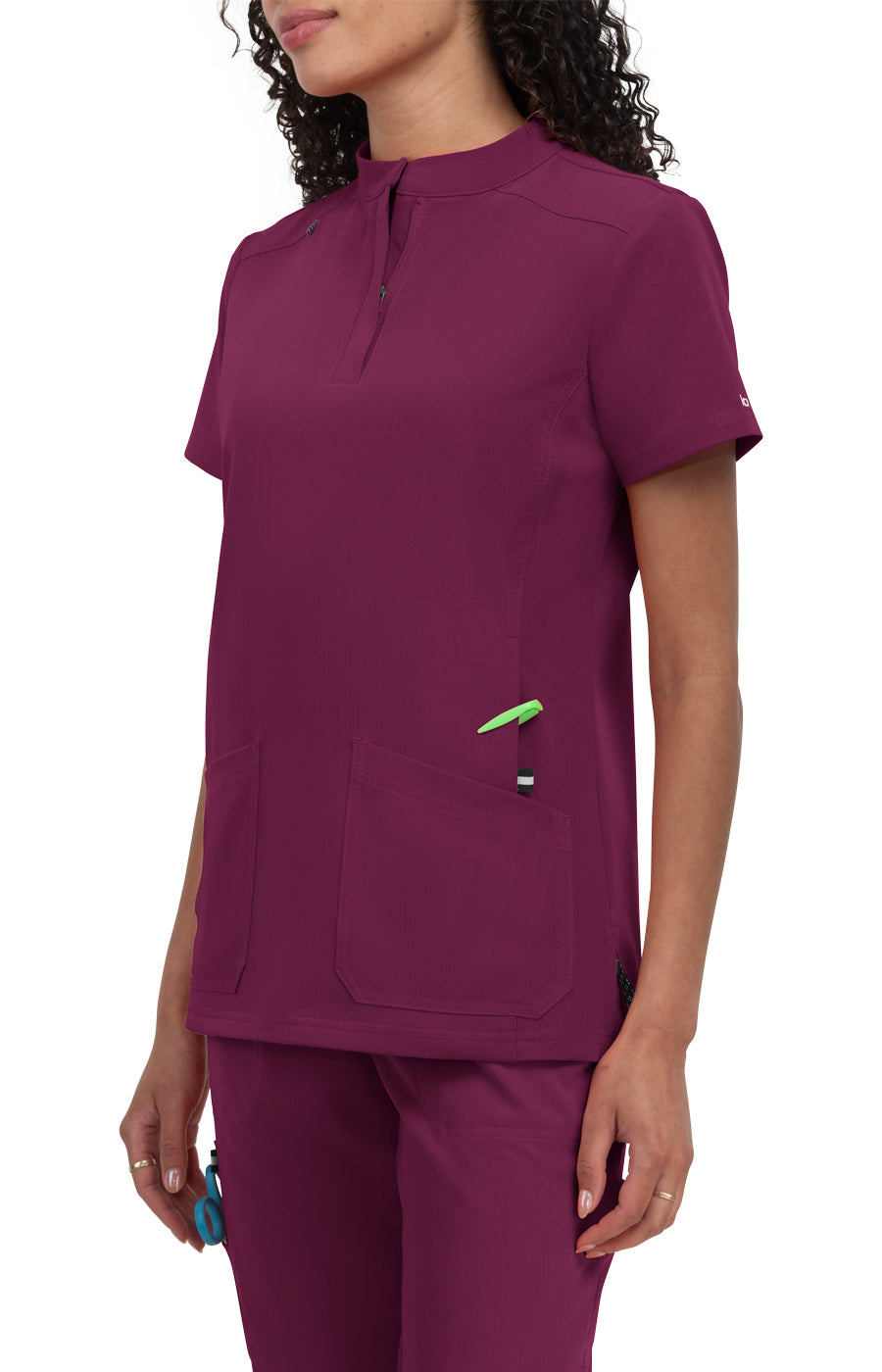 Be unique in this modern scrub top with Mandarin collar. Contemporary fit.