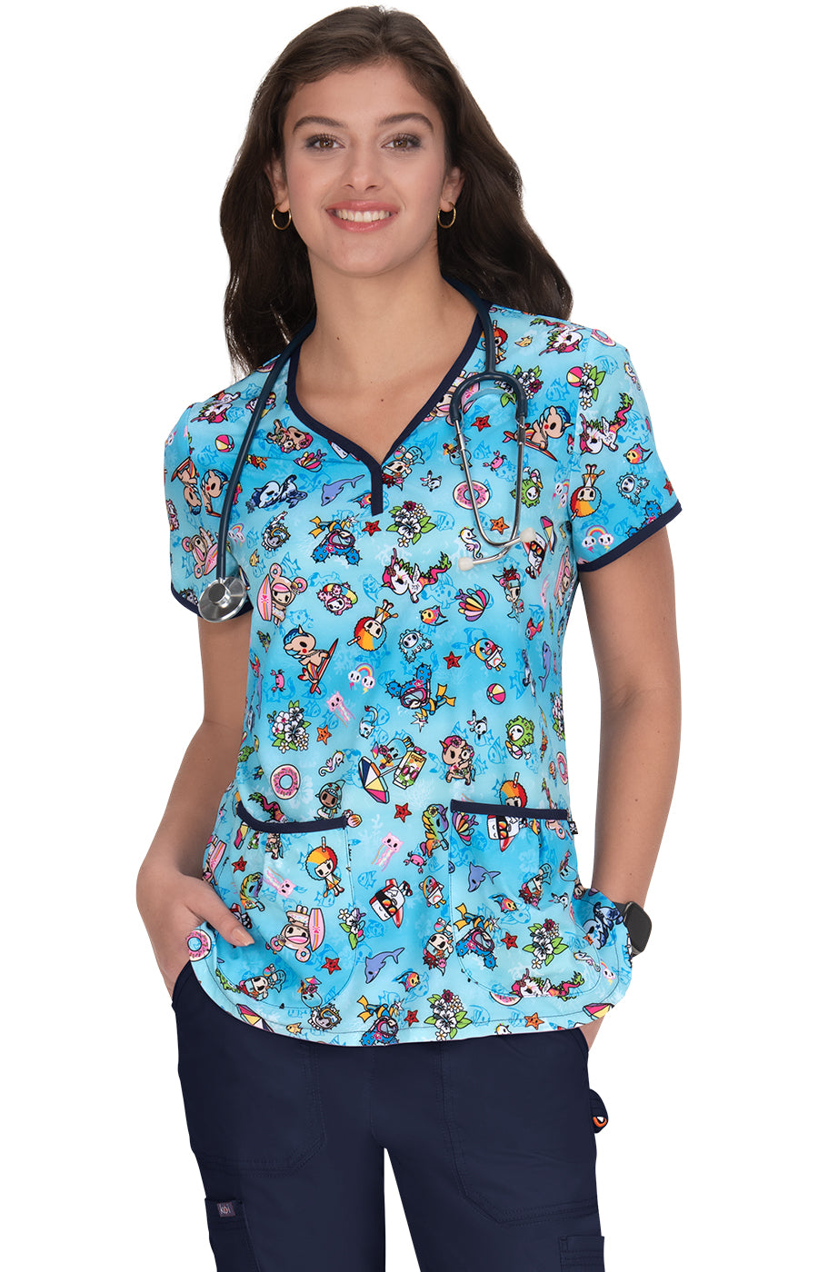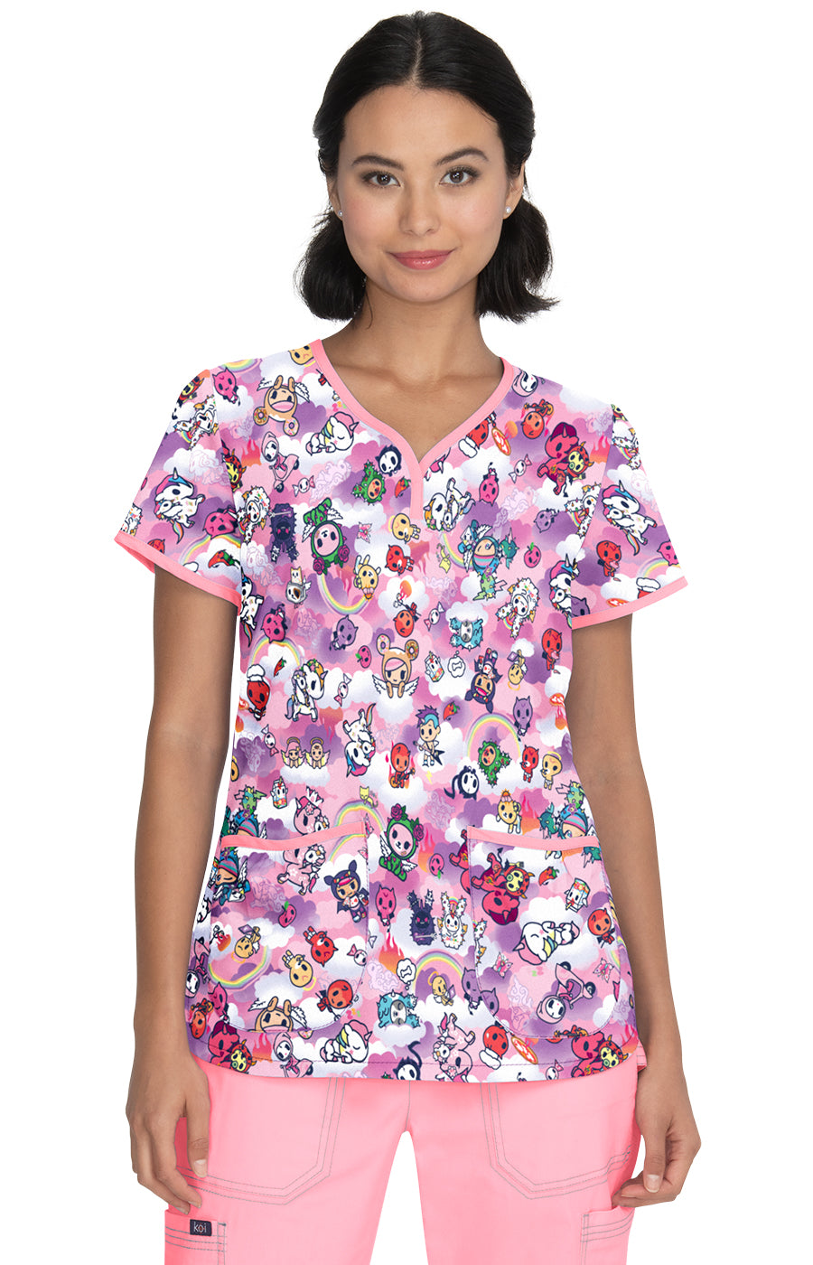 tokidoki by koi Eve Women's 2-Pocket Print Scrub Top