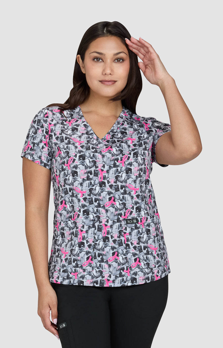 koi Basics Leslie Women's 2-Pocket Stretch BCRF Print Scrub Top