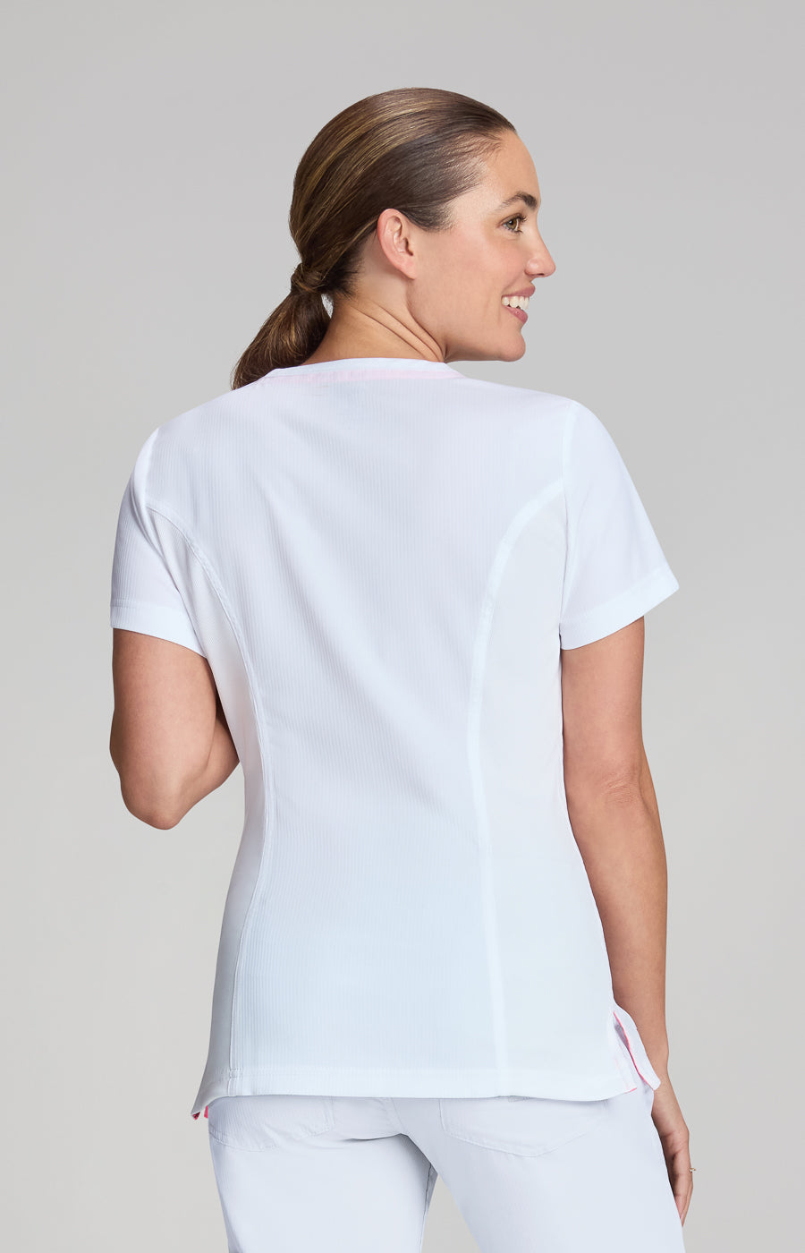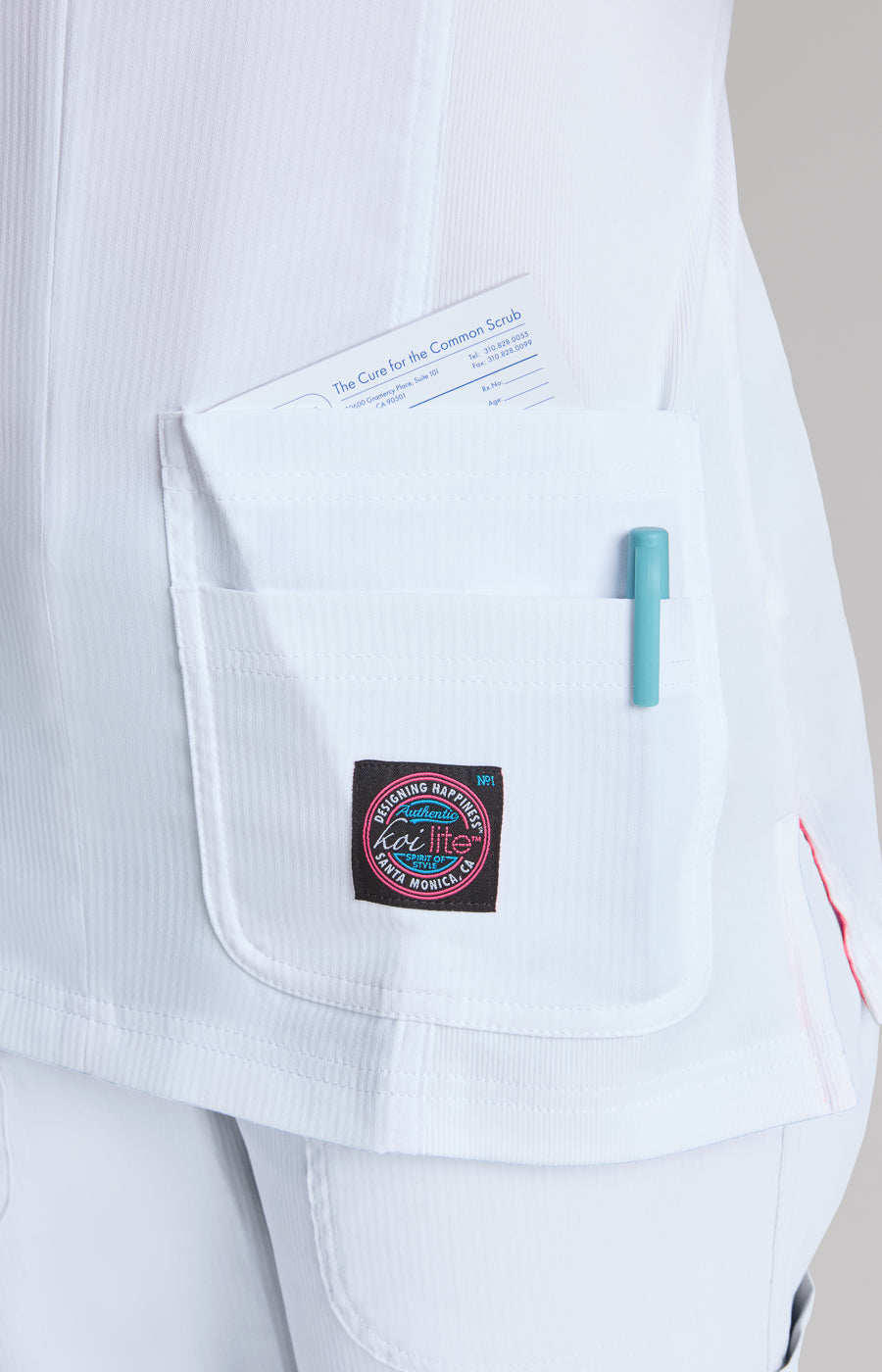 koi Lite Serenity Women's 4-Pocket Zipper Neck Scrub Top White