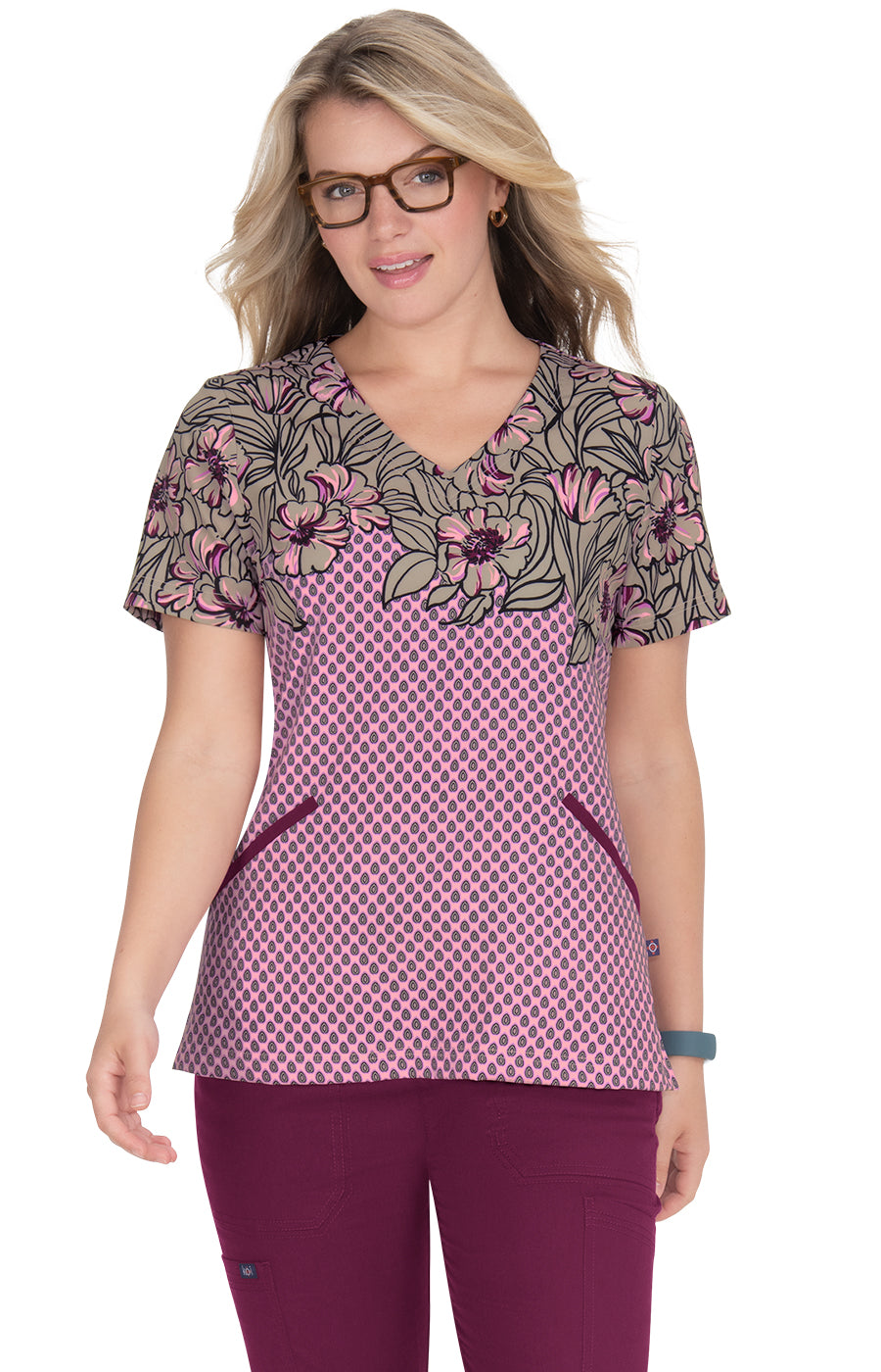 koi Stretch Brianne Women's 2-Pocket Print Scrub Top